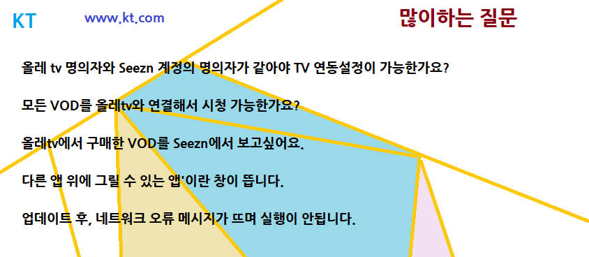 [올레 KT TV] 올레 tv 명의자와 Seezn 계정의 명의자가 같아야 TV 연동설정이 가능한가요?